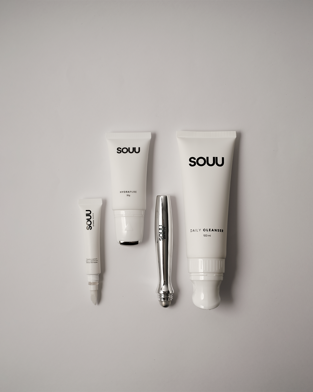 O KIT YOUR DAILY RESET reúne quatro essenciais da SOUU para uma pele saudável e bem cuidada: limpeza, hidratação, cuidado para a área dos olhos e proteção labial. Cada fórmula inteligente, aliada aos nossos aplicadores que massageiam suavemente a pele, simplifica sua rotina sem abrir mão de resultados visíveis e ainda adiciona pequenos momentos de bem-estar ao seu dia.