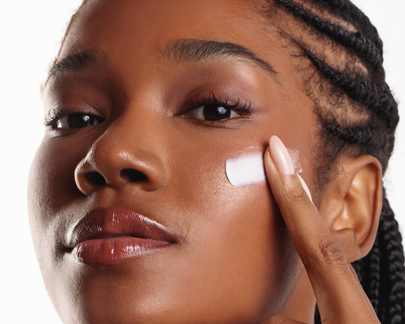 Retire a tampa transparente e gire o aplicador no sentido anti-horário para destravar. Pressione suavemente a bisnaga para liberar pequenas quantidades do produto diretamente sobre o rosto limpo e seco.