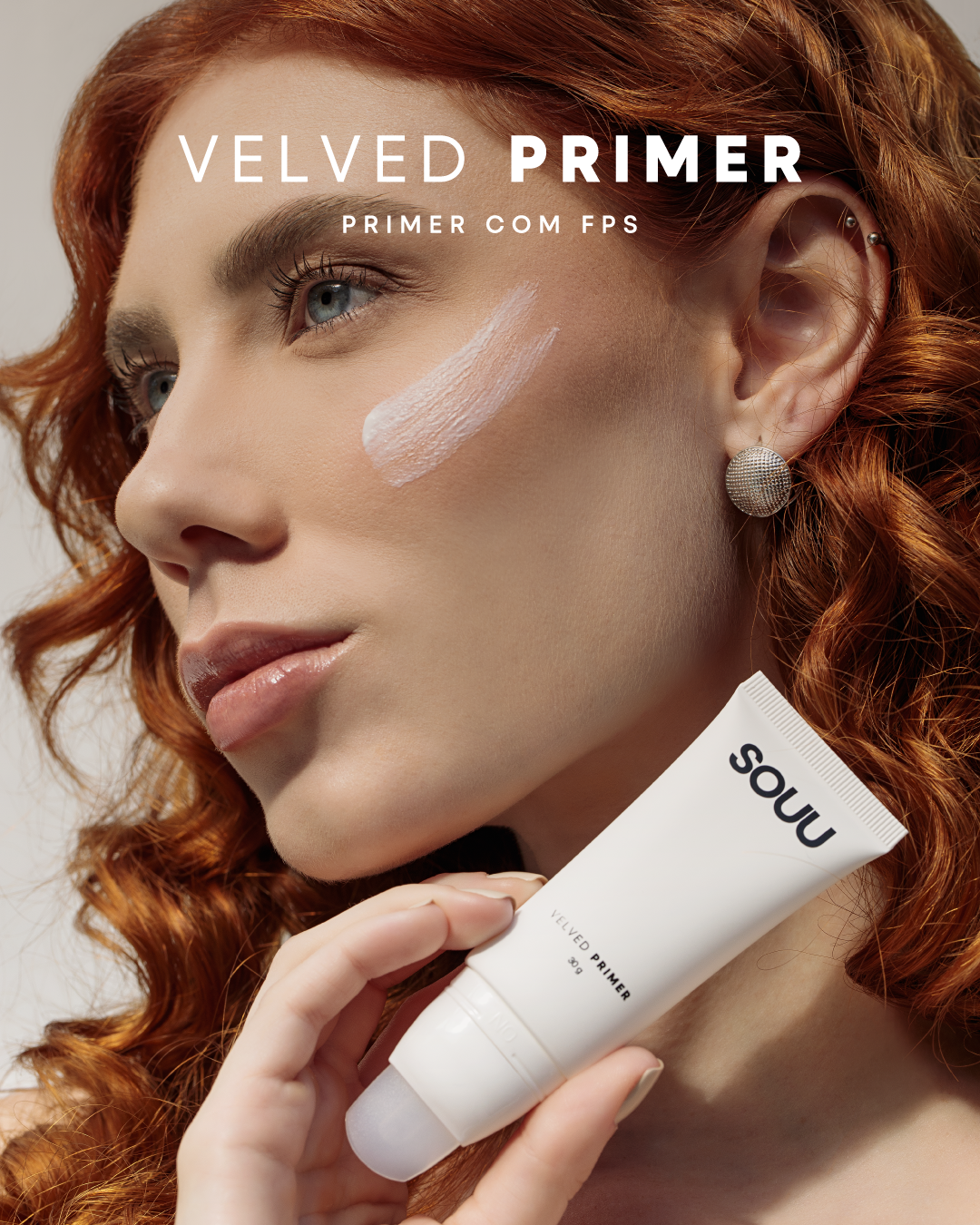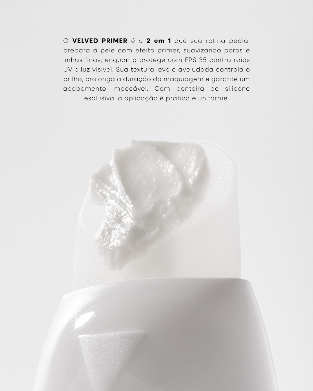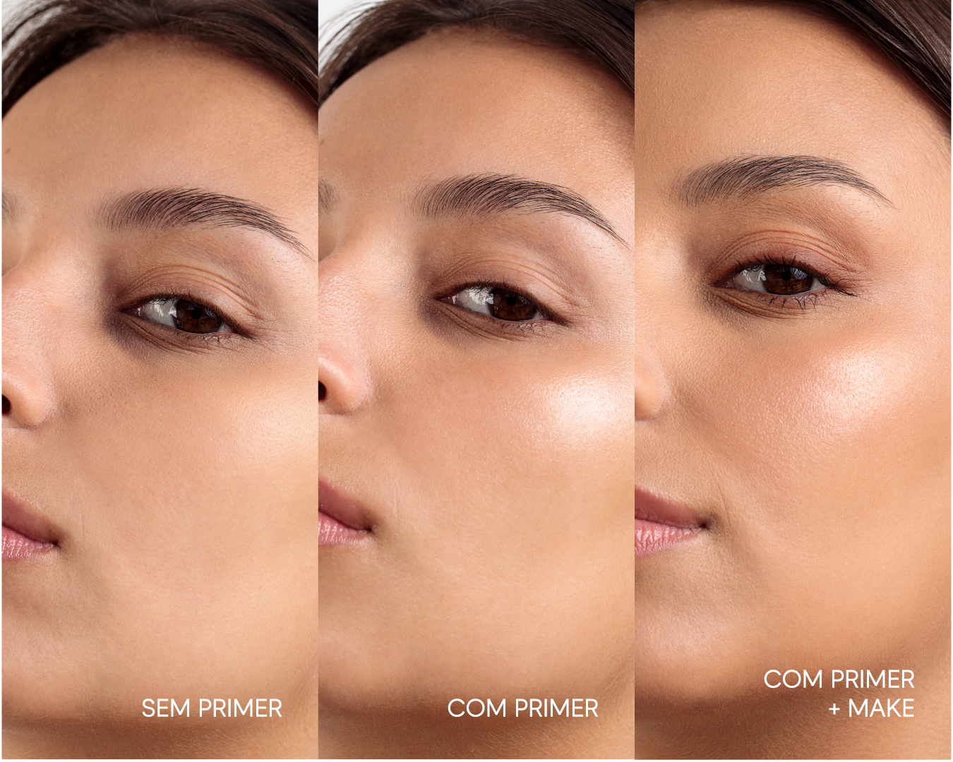 Utilize a ponteira de silicone para espalhar o primer em movimentos suaves e contínuos, garantindo uma aplicação uniforme por todo o rosto.